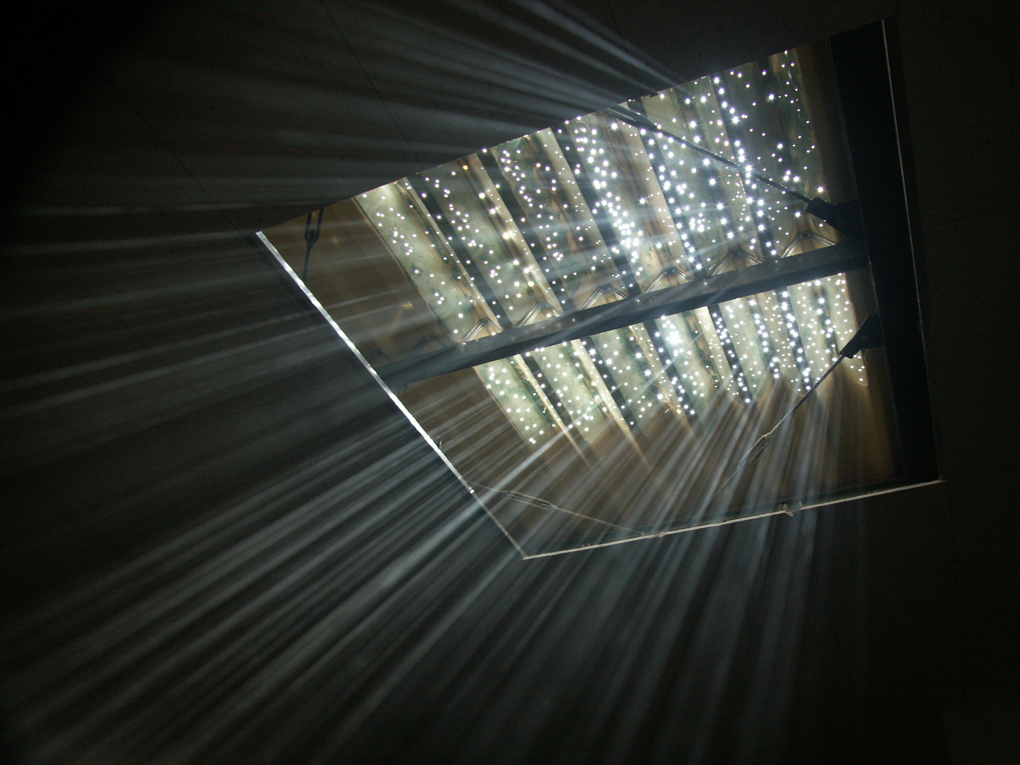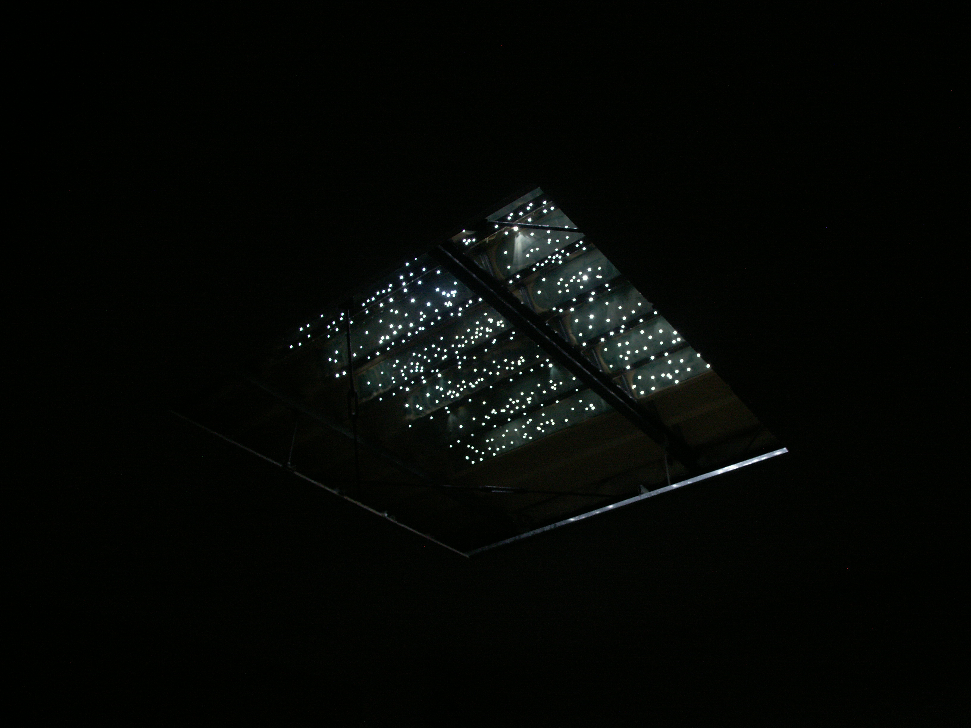 To turn the quality and texture of a space, and volumes of light, into an artwork. Would it be possible to perceive these things that we cannot see or touch? This project began when the former building of gallery. sora. was being torn down in order to rebuild it. Without adding anything through making or painting, the artwork took shape during the process of demolition. Holes were bored into the walls and ceiling in order to bring light into the space. The two-layered structure of the walls and movement of the viewer produced a phenomenon of twinkling lights that came and went. the holes functioned as pinhole cameras: when clouds crossed in front of the sun, images of clouds were projected in all the countless points of light that fell onto the floor. Different sites and materials were selected for each work in the series ̶ light gauge steel and reflections from water surfaces for Brocken 6, illumination from night scenery for Brocken Y, and sheets made from aluminum foil and the wind for Brocken 1, for instance ̶ producing a variety of spatial experiences.