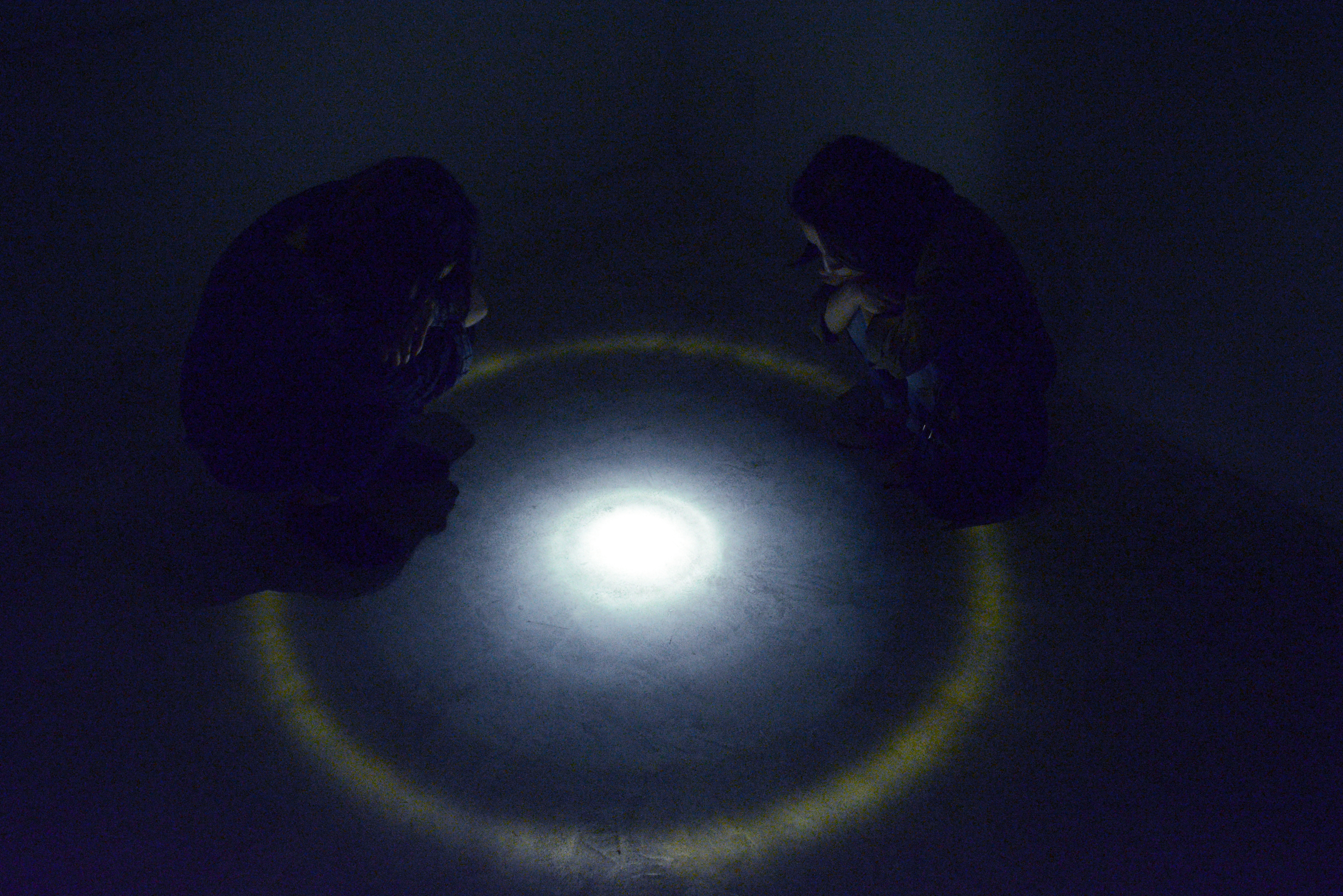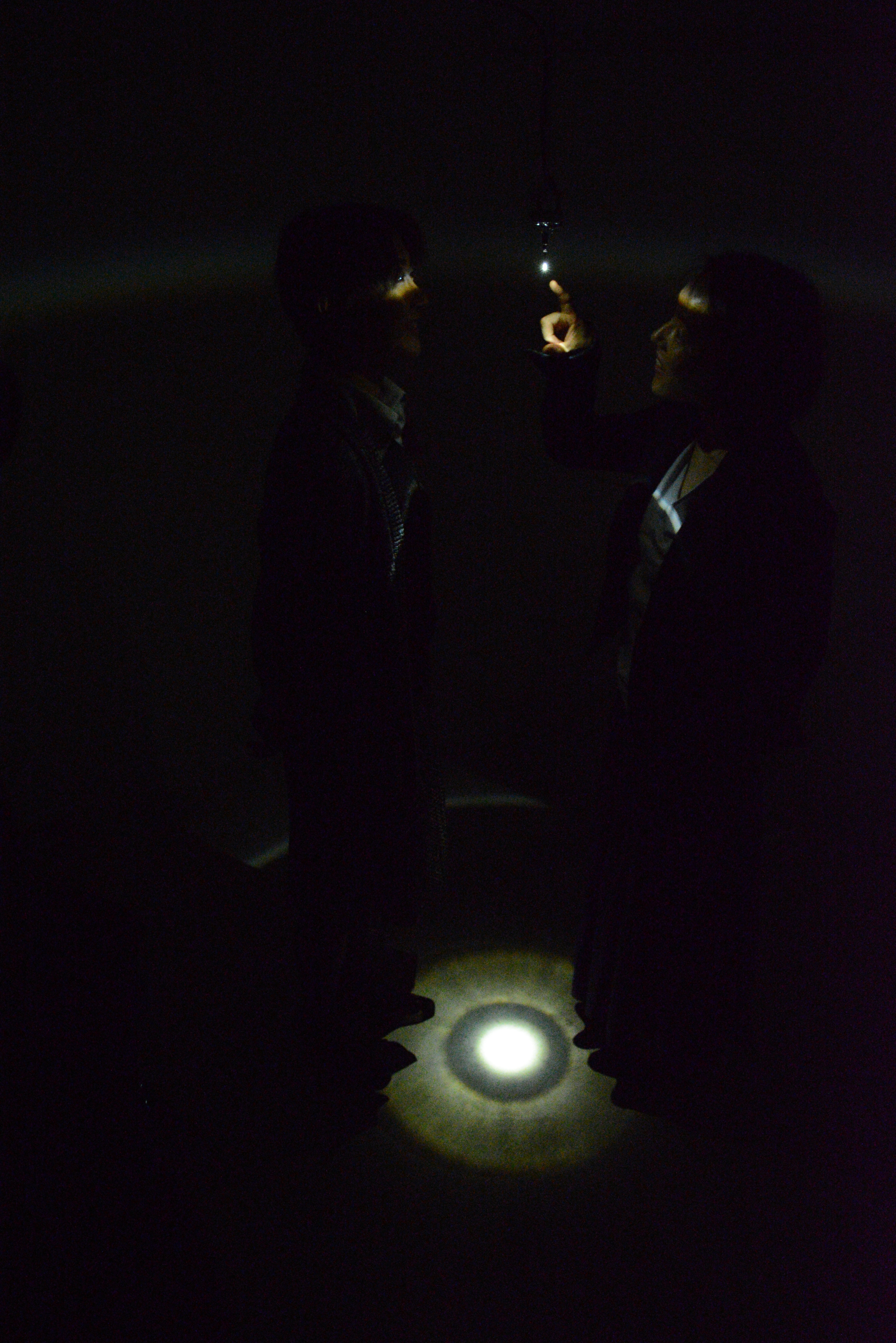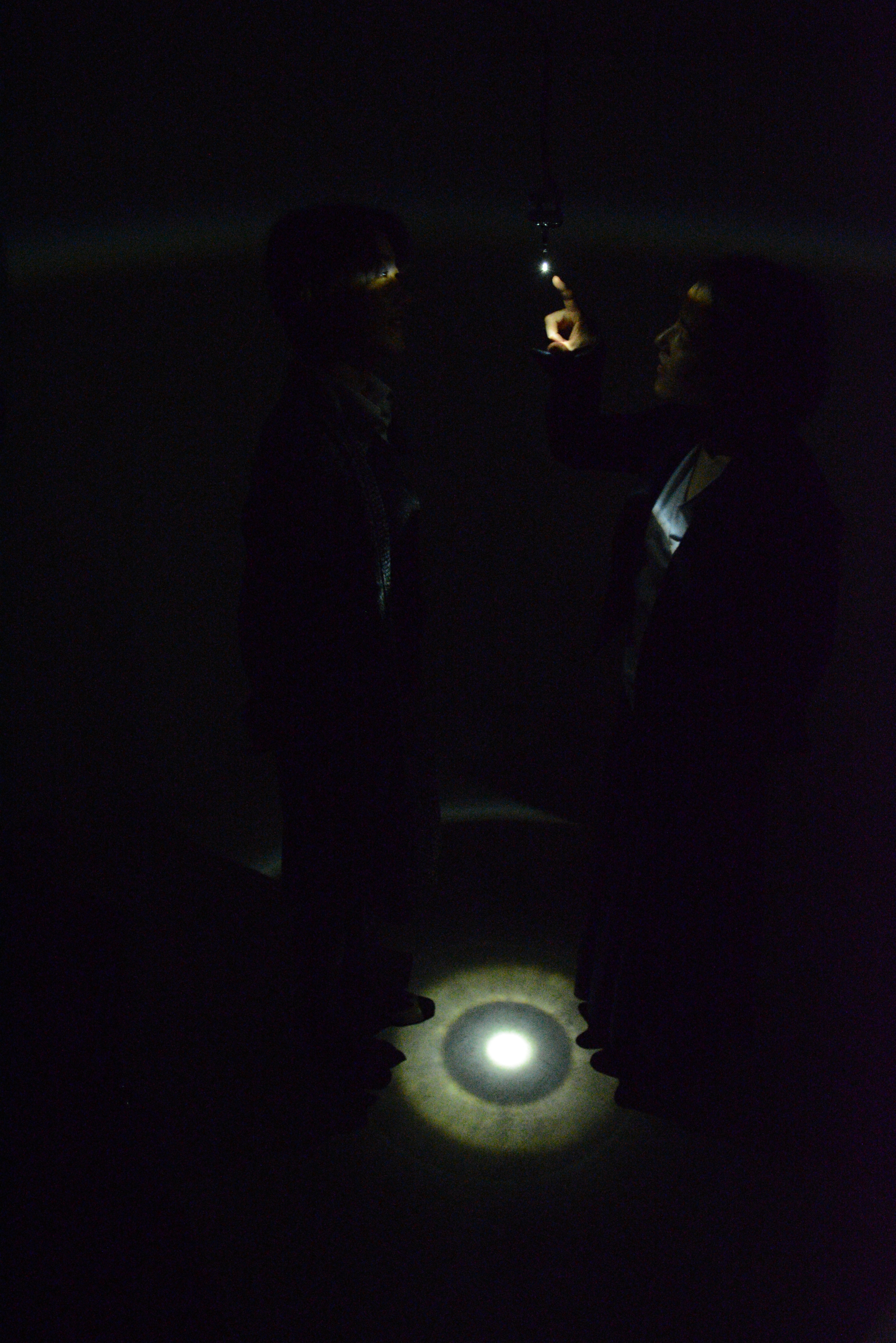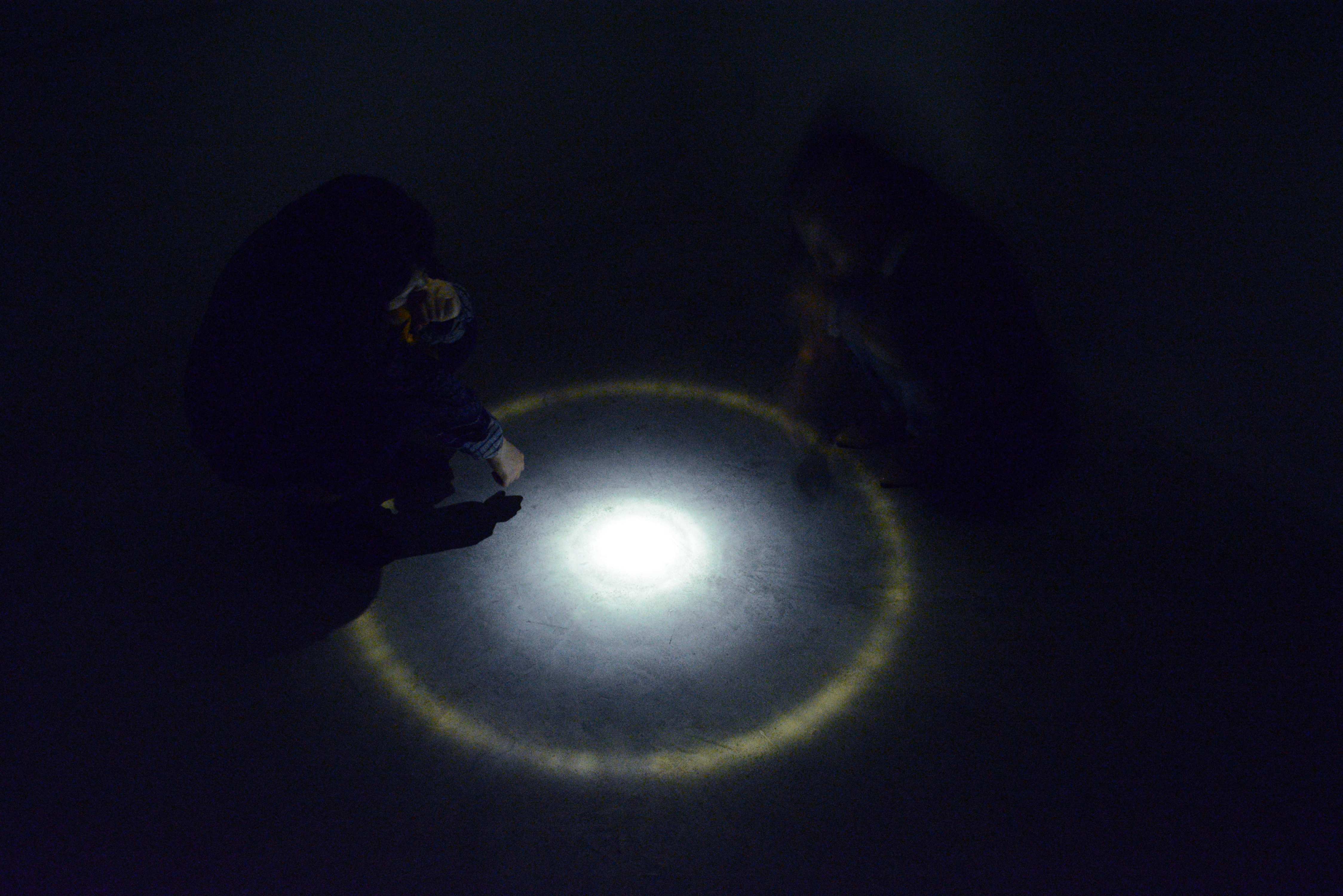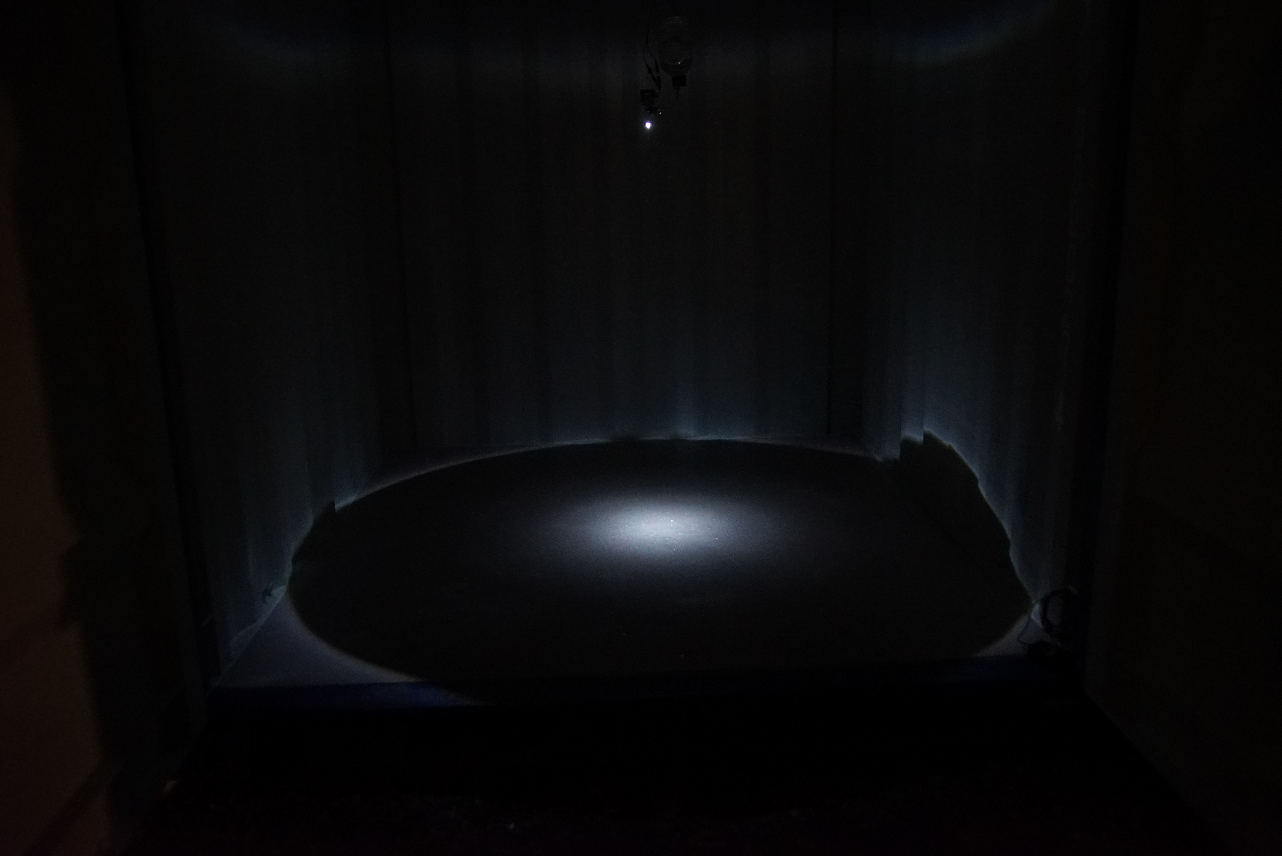 Dripping water droplets function as a lens with a constantly shifting refractive index, projecting patterns of light on the floor and walls that change continuously. Thanks to the minute changes inside the water droplets, the same pattern never appears twice. In this work, the relationship between the main elements that comprise the universe — light, space, and time — are connected to each other through gravity and the surface tension of water. <D.W>