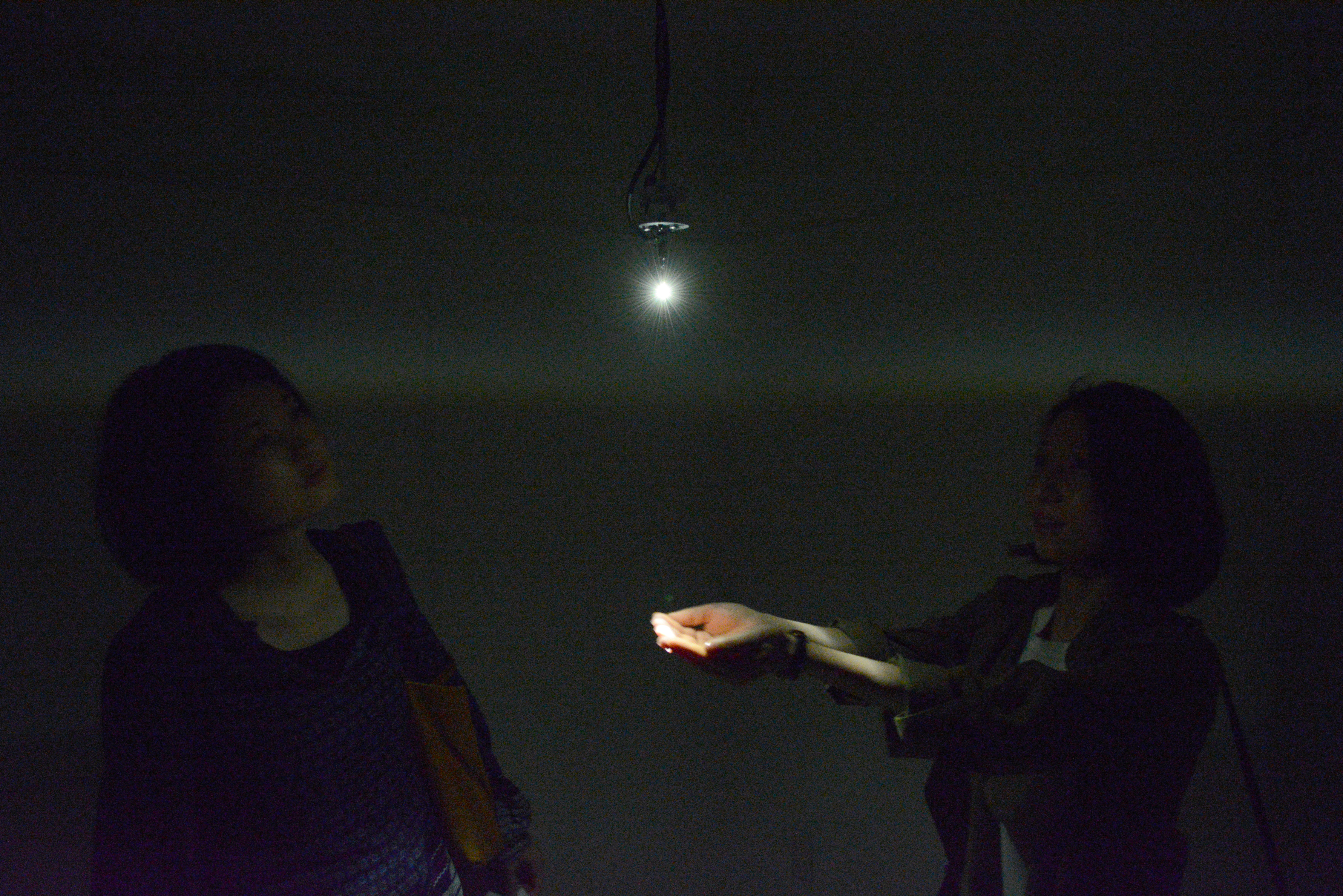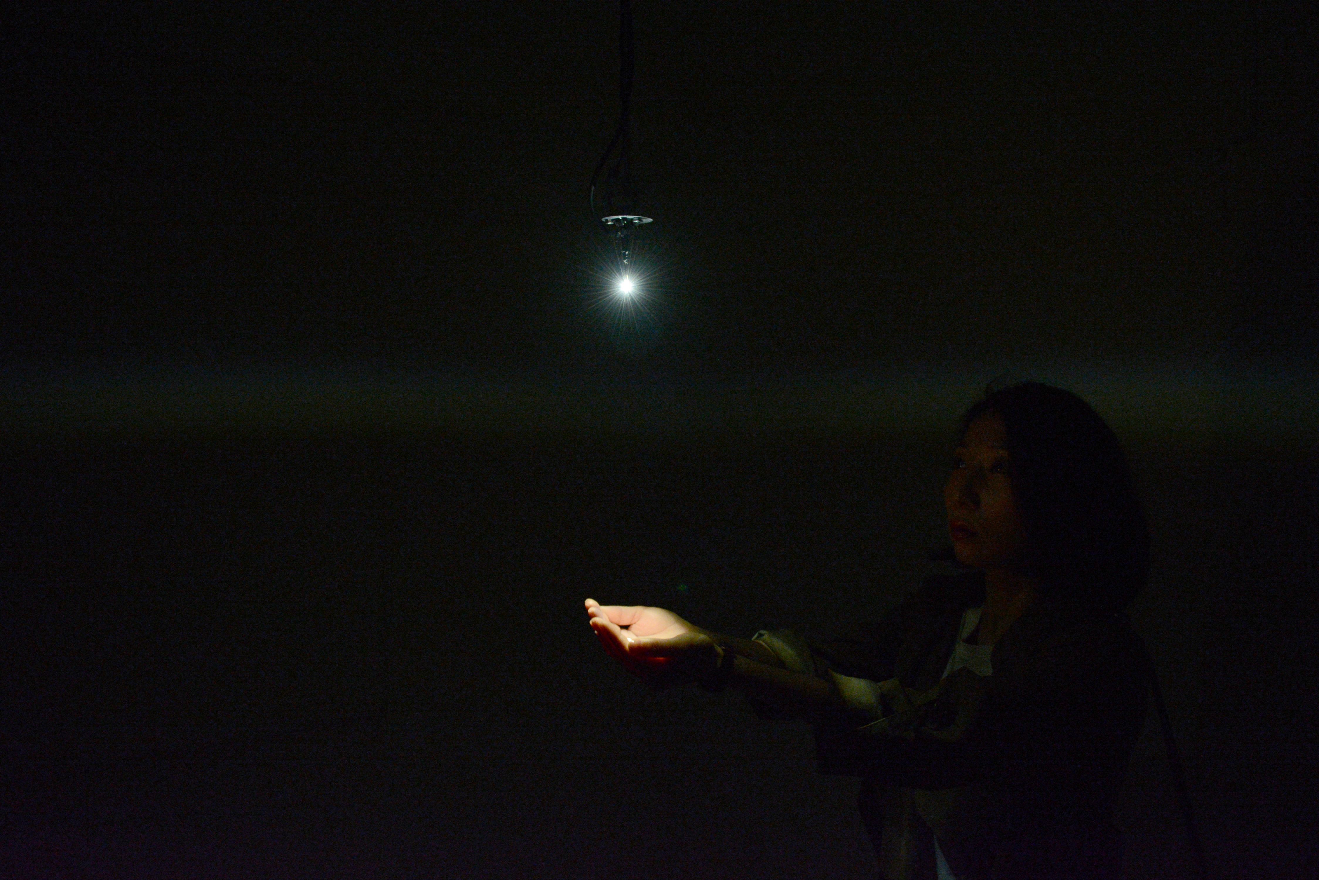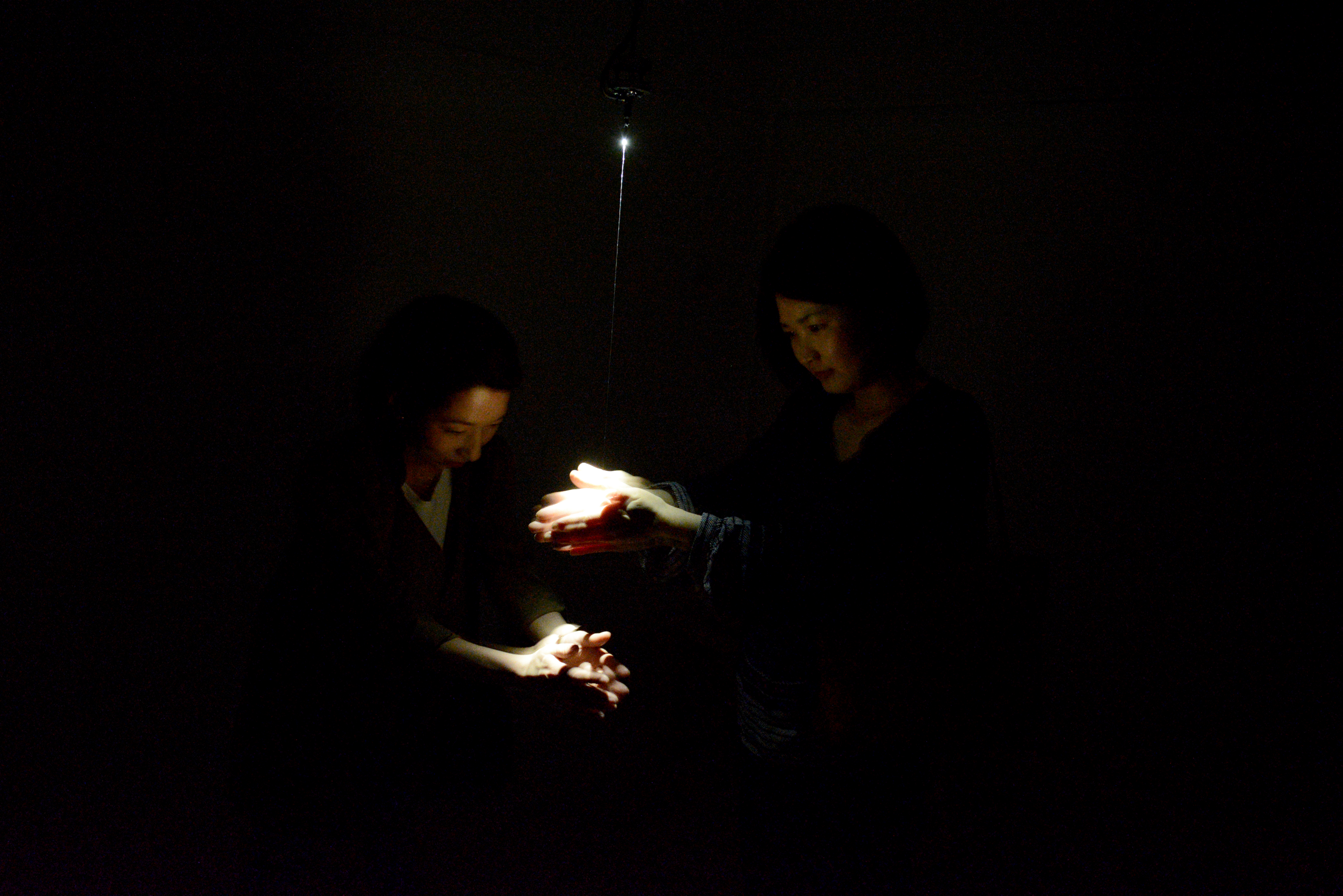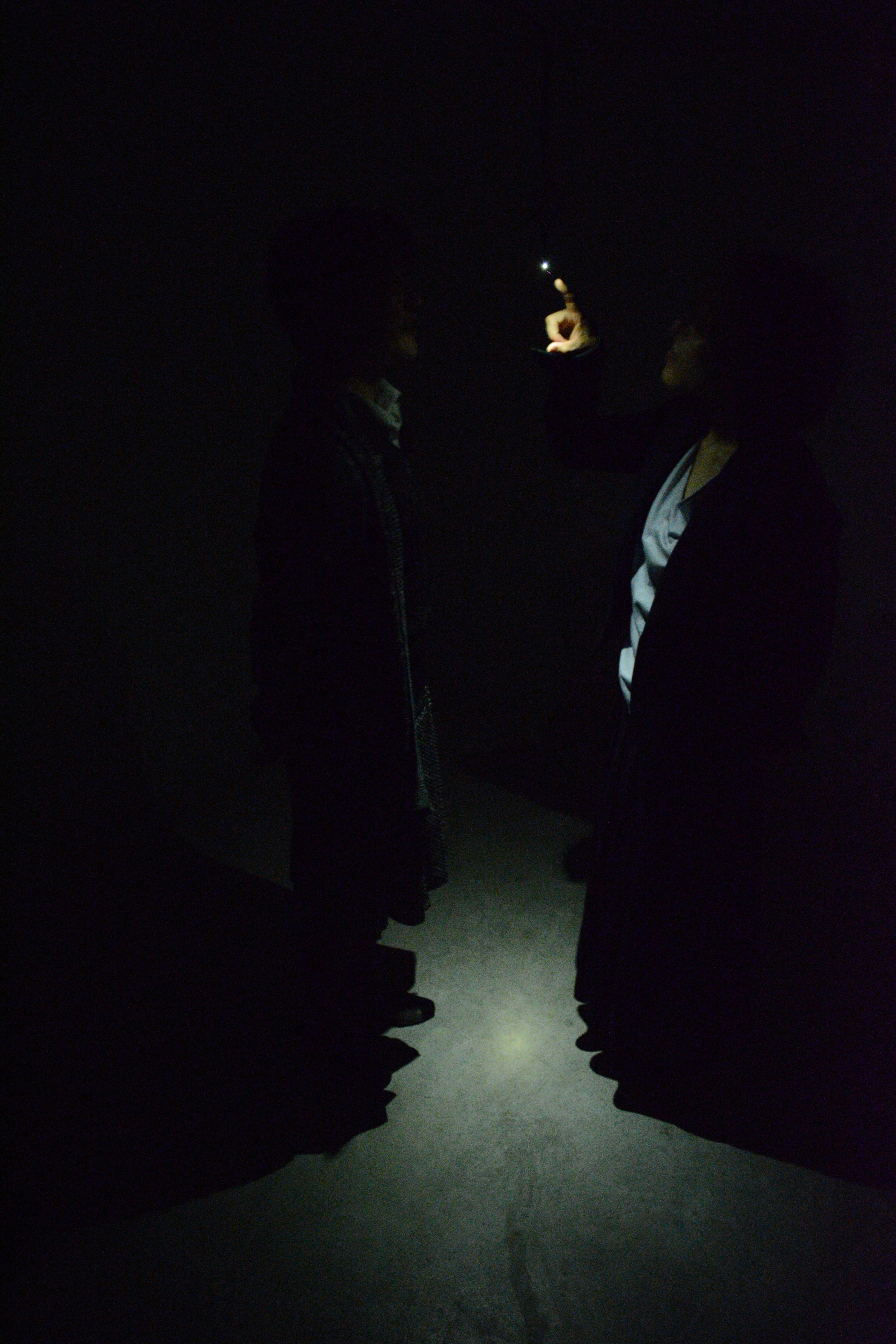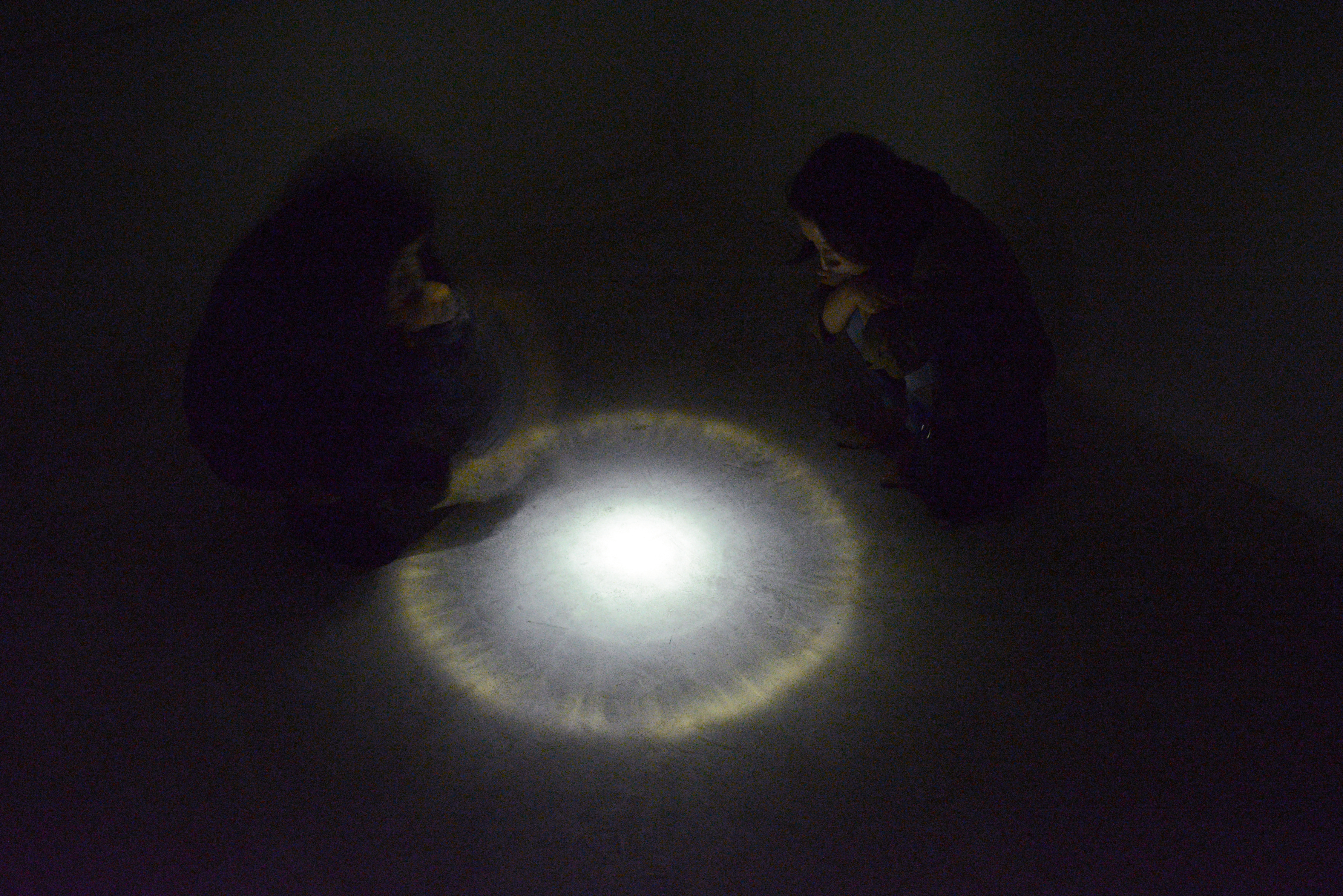 Dripping water droplets function as a lens with a constantly shifting refractive index, projecting patterns of light on the floor and walls that change continuously. Thanks to the minute changes inside the water droplets, the same pattern never appears twice. In this work, the relationship between the main elements that comprise the universe — light, space, and time — are connected to each other through gravity and the surface tension of water. <D.W>