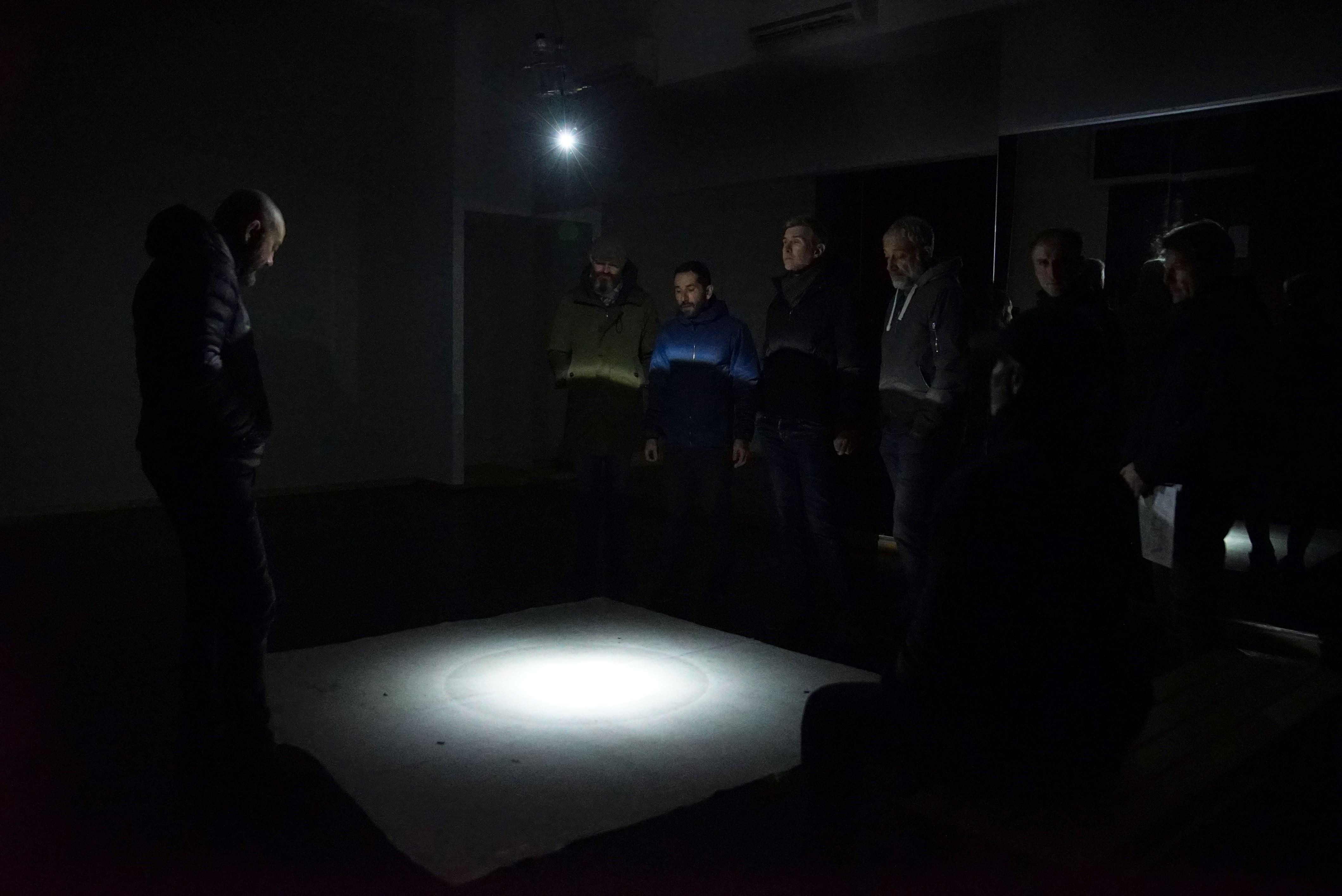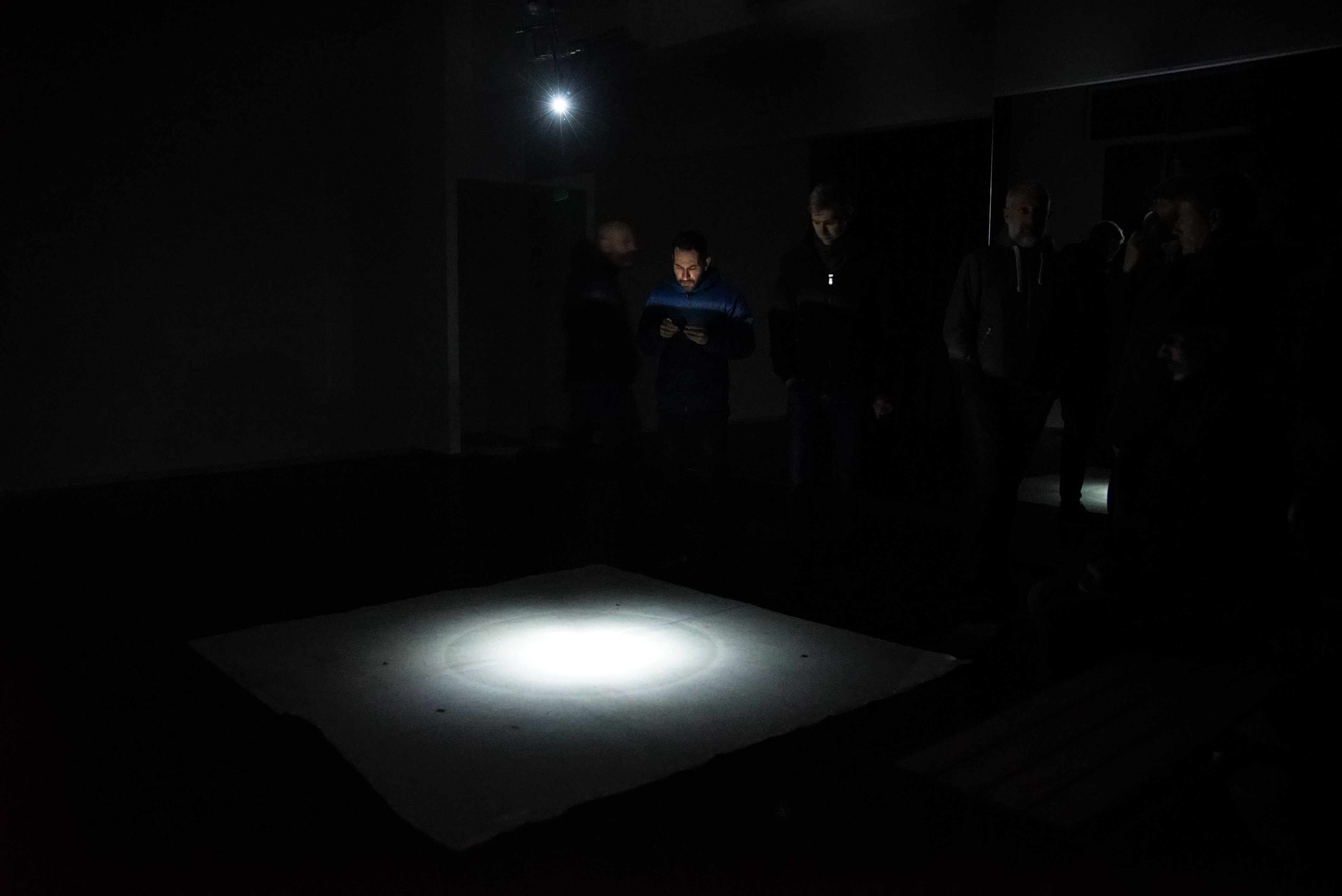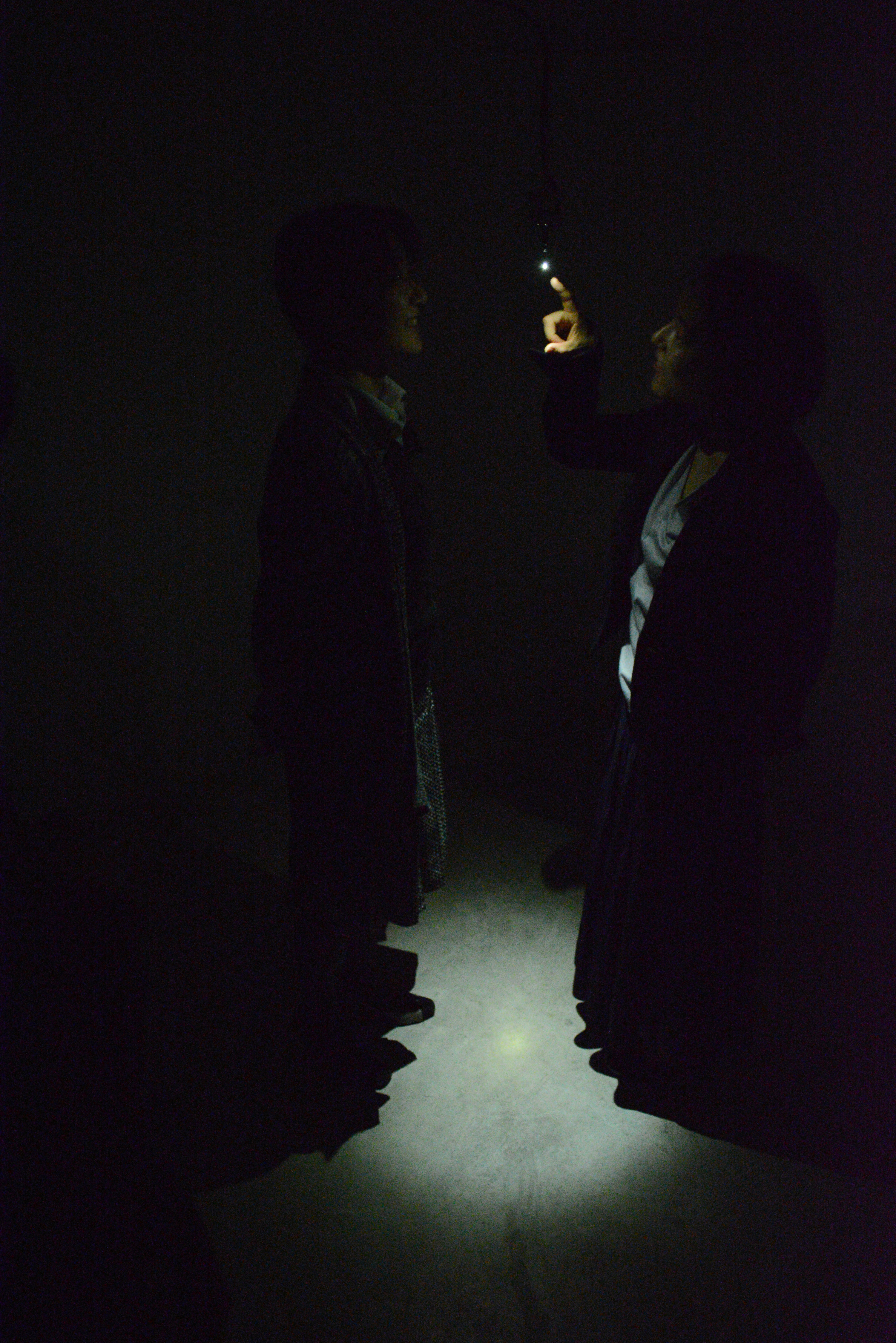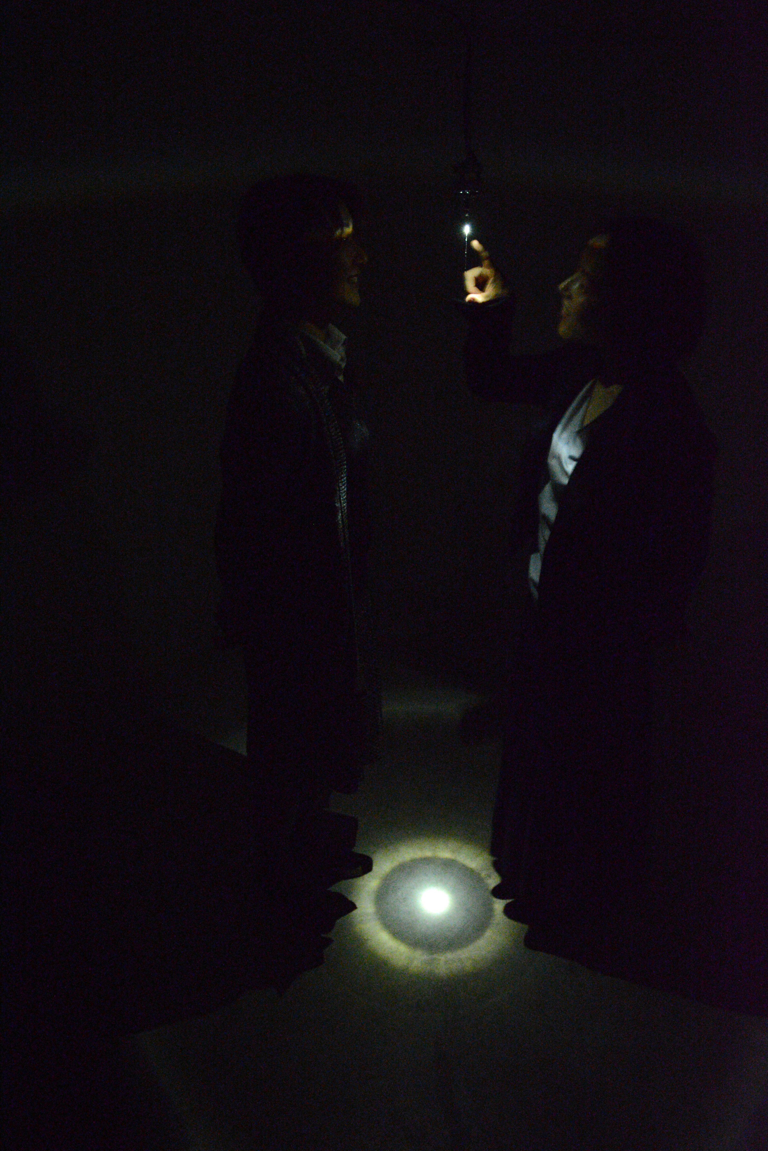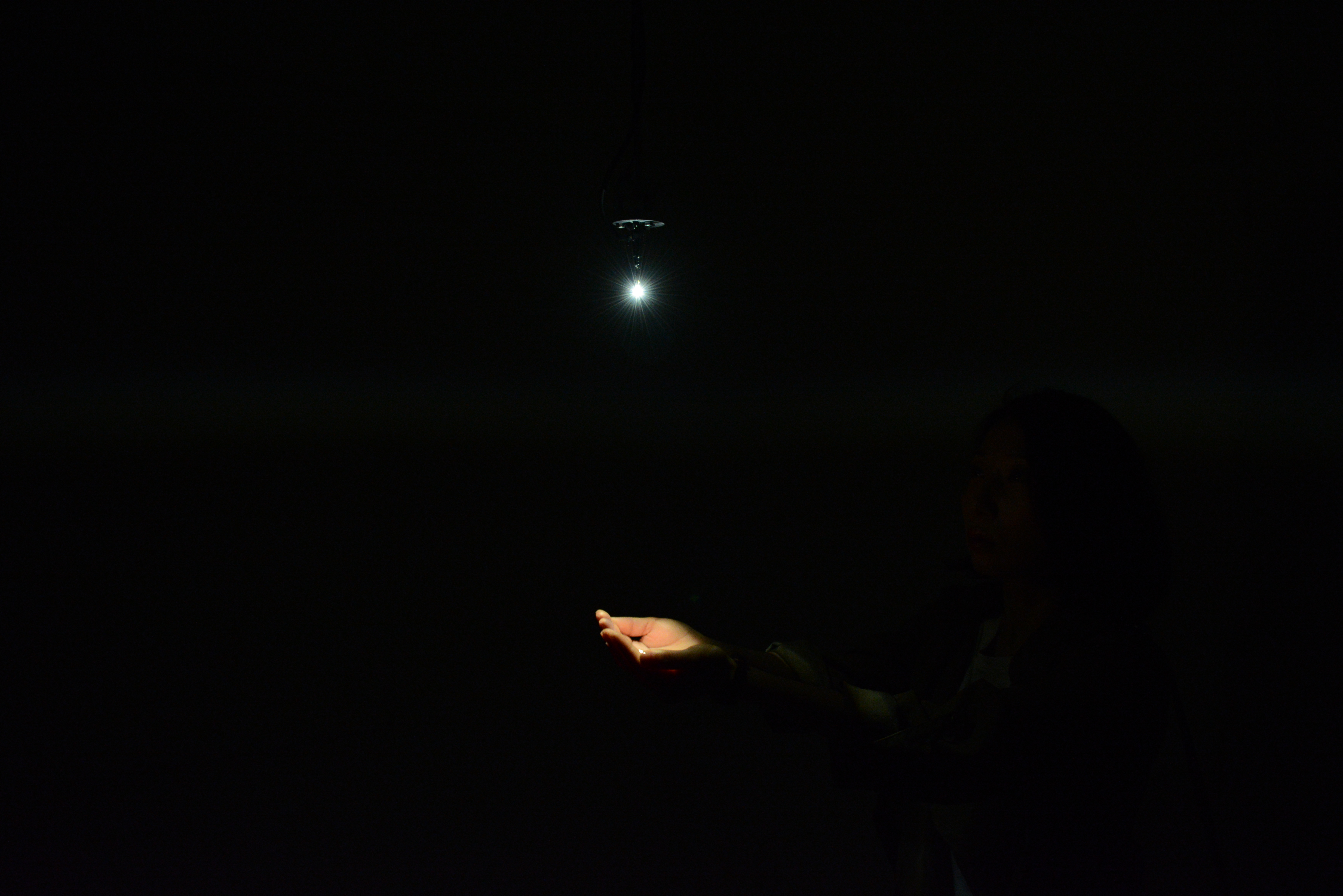 Dripping water droplets function as a lens with a constantly shifting refractive index, projecting patterns of light on the floor and walls that change continuously. Thanks to the minute changes inside the water droplets, the same pattern never appears twice. In this work, the relationship between the main elements that comprise the universe — light, space, and time — are connected to each other through gravity and the surface tension of water. <D.W>