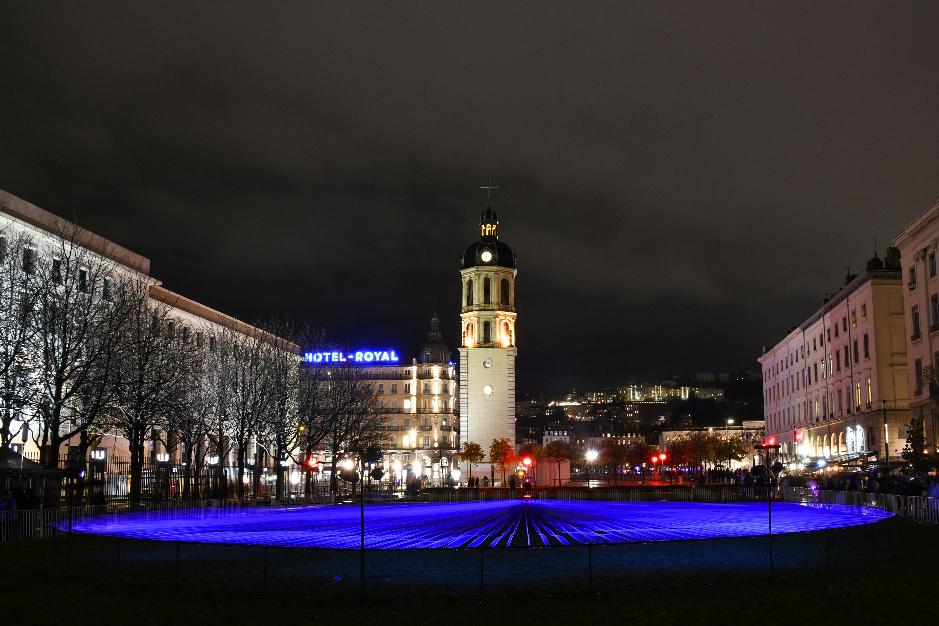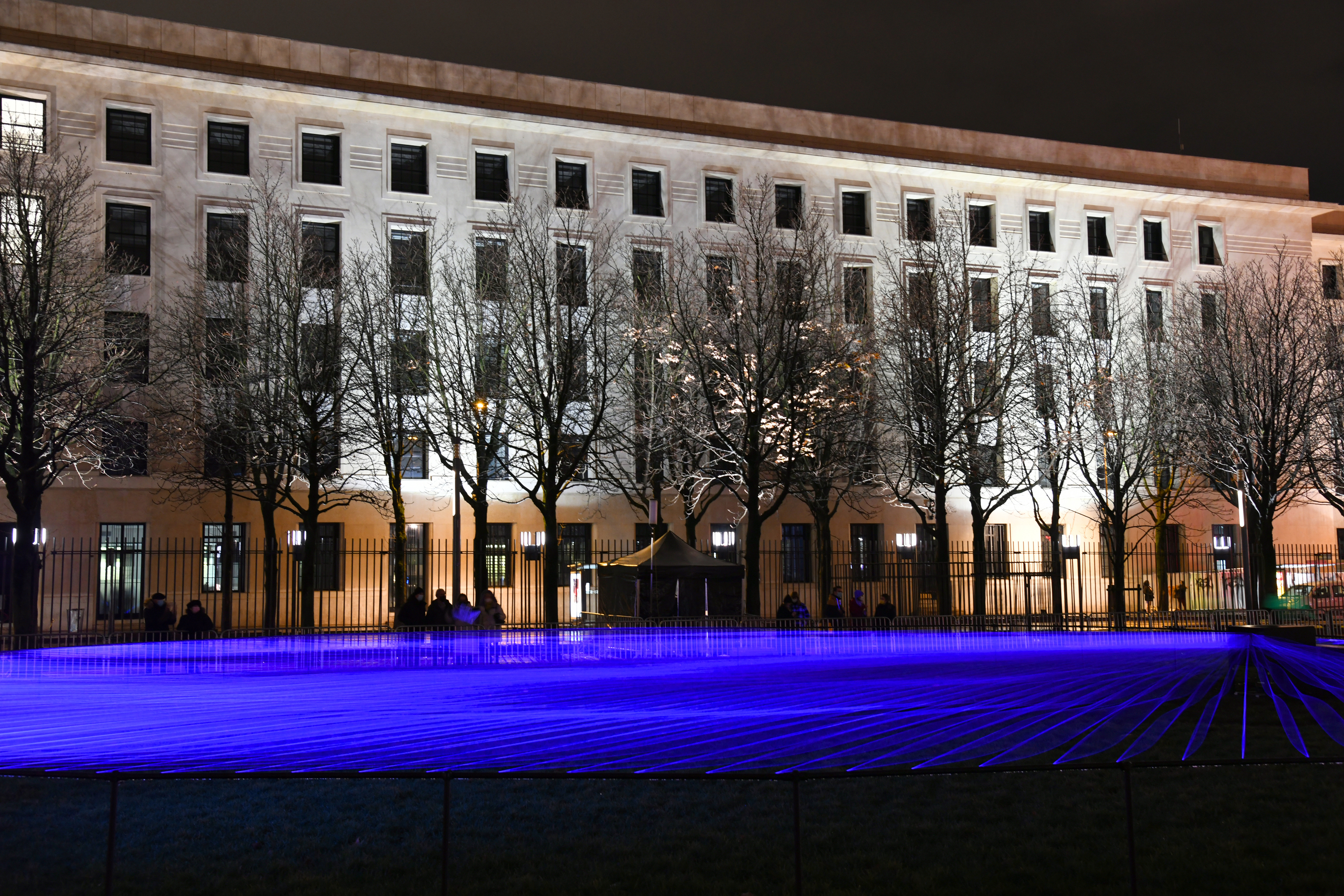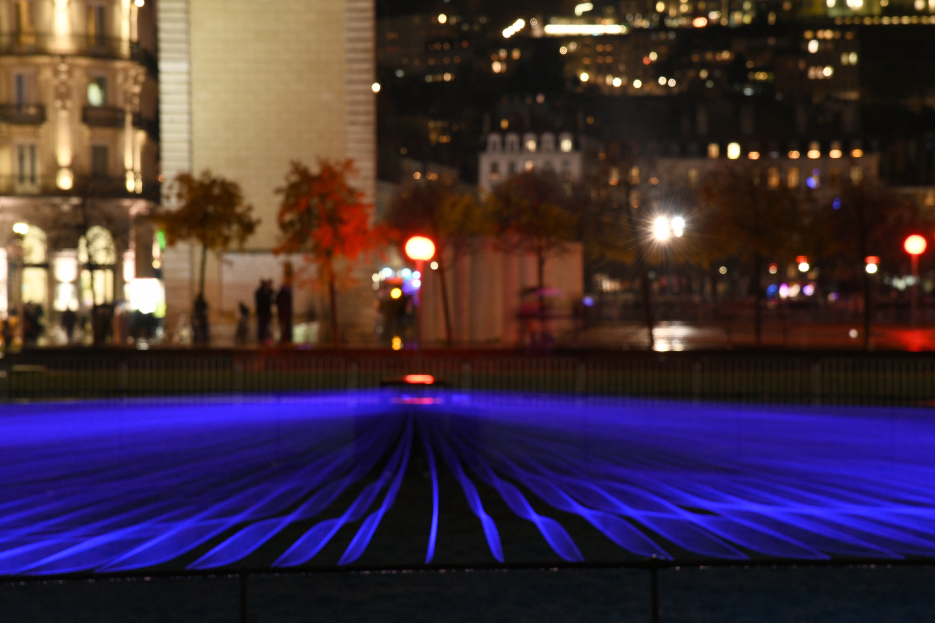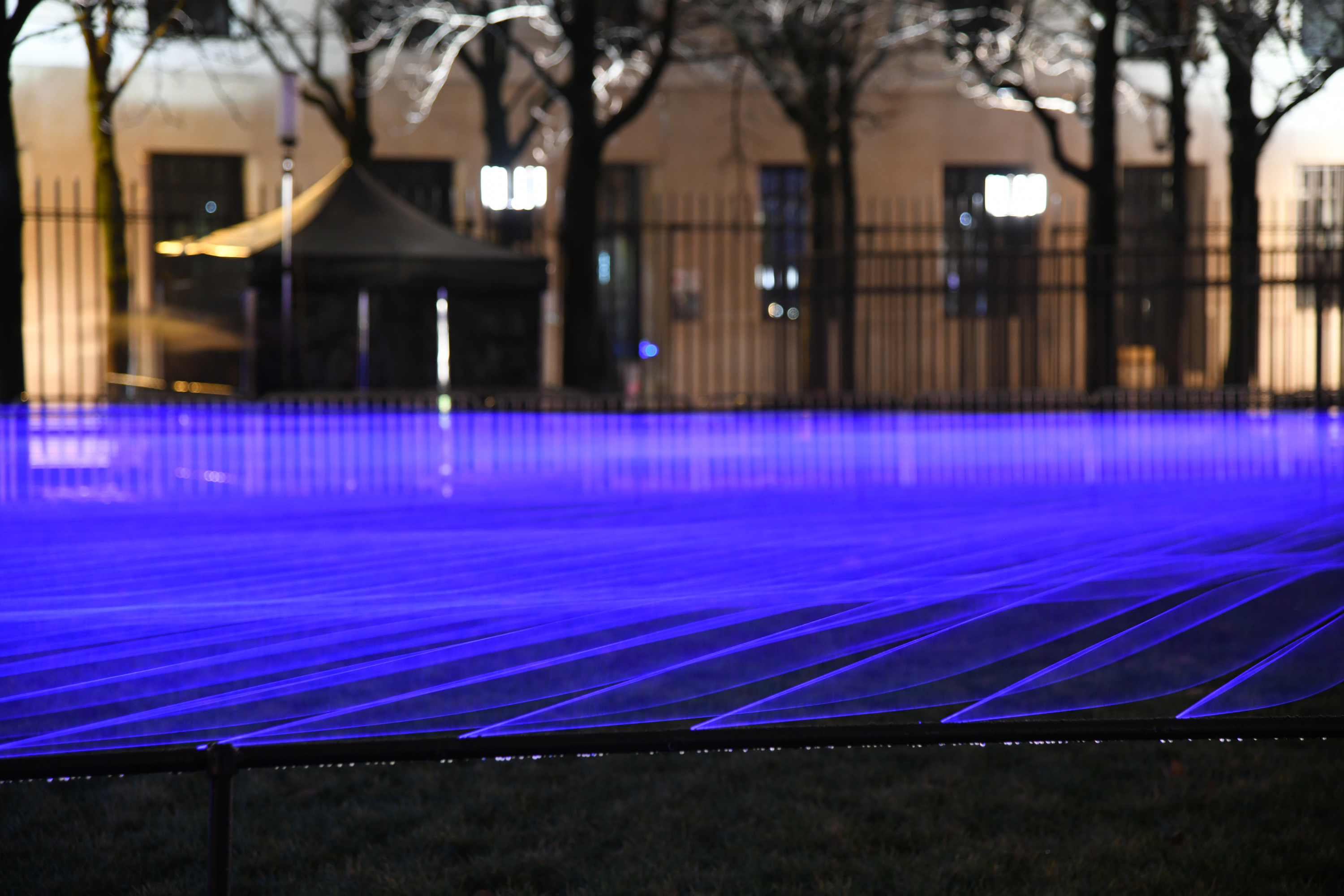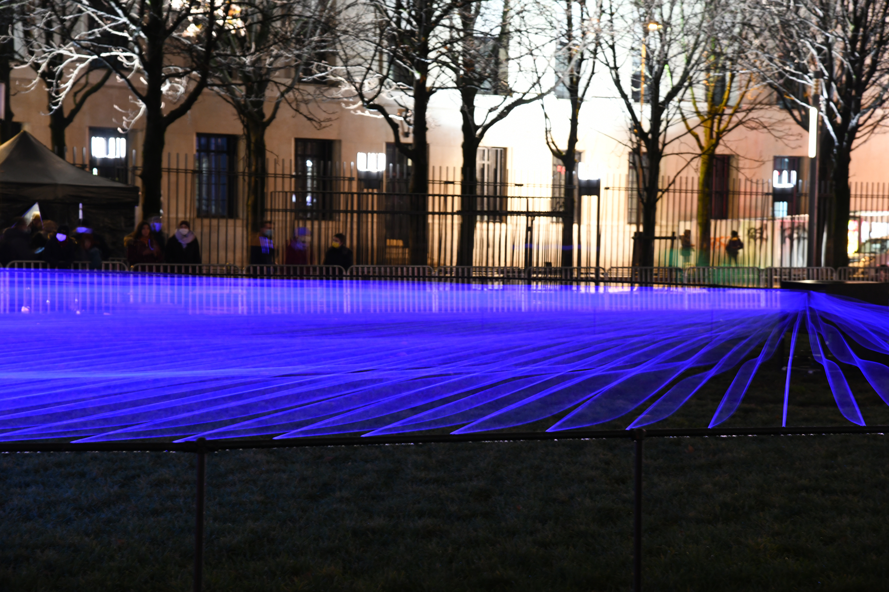 Aftereal at Fête des Lumières Photo: Muriel Chaulet Fête des Lumières/Lyon, France2021Fluorescence thread, UV light, MotorW:25m x D:25m x H:1m